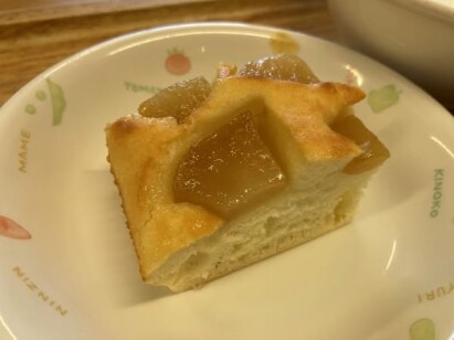 給食室前に毎日給食の展示を行っています。子どもたちで「今日のご飯は何だろうね」と見たり、保育者に「このお野菜何?」と質問したりする姿が見られます。展示することで食に対して興味を持ち、「このお野菜に挑戦してみよう」など苦手な食べ物に挑戦する姿もありますよ♪