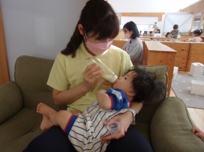 あお組でもSDGsの取り組みを行っています。「10.人や国の不平等をなくそう」をテーマに、一人ひとり大切な存在だよという気持ちを伝えたり接したりすることでお友だちにも優しく接することができるようになると考えています。ミルクの時間も大事なスキンシップの時間です♪