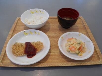 ◎魚フライ ◎ポテトサラダ ◎豆腐の味噌汁