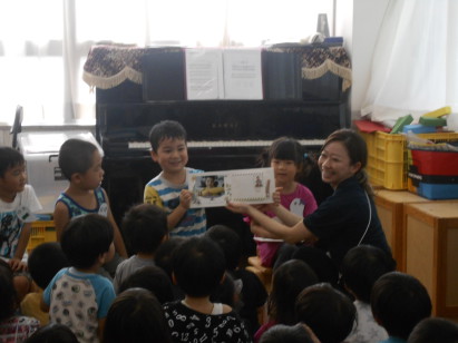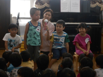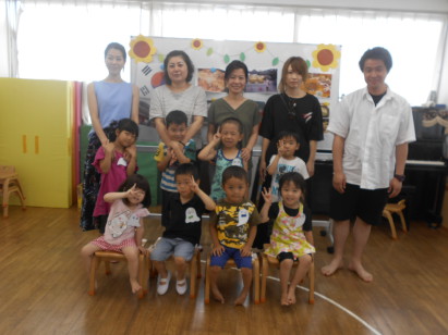 毎月おこなわれる誕生会は、年に一度自分が主役になれる日。今日の主役は8月うまれのお友達です‼夏といえば夏祭りごっこでも楽しんだ『オバケ』。「本当にオバケがいると思いますか?」と質問してみました。韓国のおいしそうな料理も見て「おなかすいたー」とランチルームに駆け込んでただいま給食中です😊