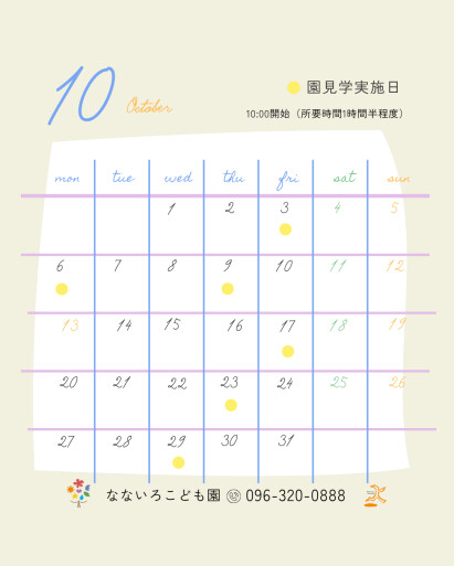 10月1日現在全クラス満員につき、11月以降のお受入れの予定はありません。